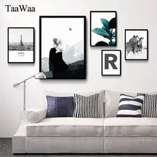 .Gallery of Paris Green Leaves Zebra Girl Quote Canvas Posters and Prints Decorative Wall Art Minimalist Painting Nordic Style Picture Decor