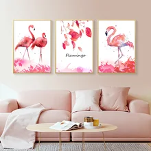 .Images of TAAWAA Pink Flamingo Canvas Poster and Print Painting Nordic Decorative Wall Art Pictures for Living Room Home Decor