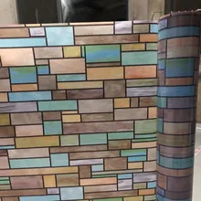 .Pictures of Stained lattice privacy Window Film Frosted Glass sticker Electrostatic Colored brick opaque home Decorative film 90 x 100 cm